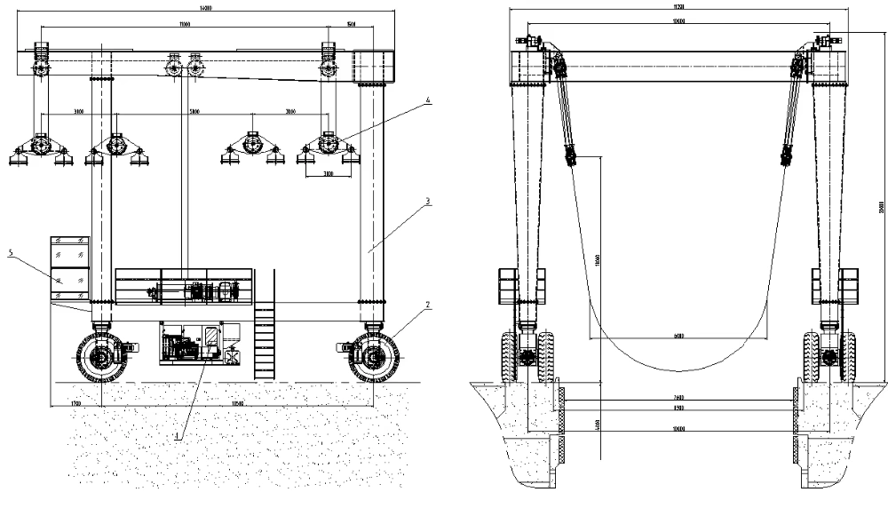 2. This crane can be adjusted the width of the main girder according to the boat in case tohandling different side boat.